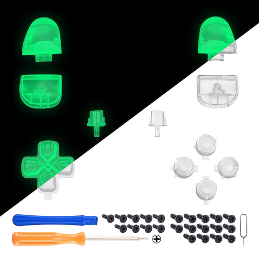eXtremeRate PS5コントローラーBDM-030/040/050/060対応交換対応用フルセットボタン【暗闇で光る-グリーン】