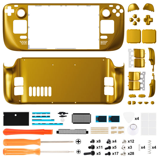 eXtremeRate スチームデックLCD対応用カスタムフルセットボタン付きシェル【クロームゴールド】