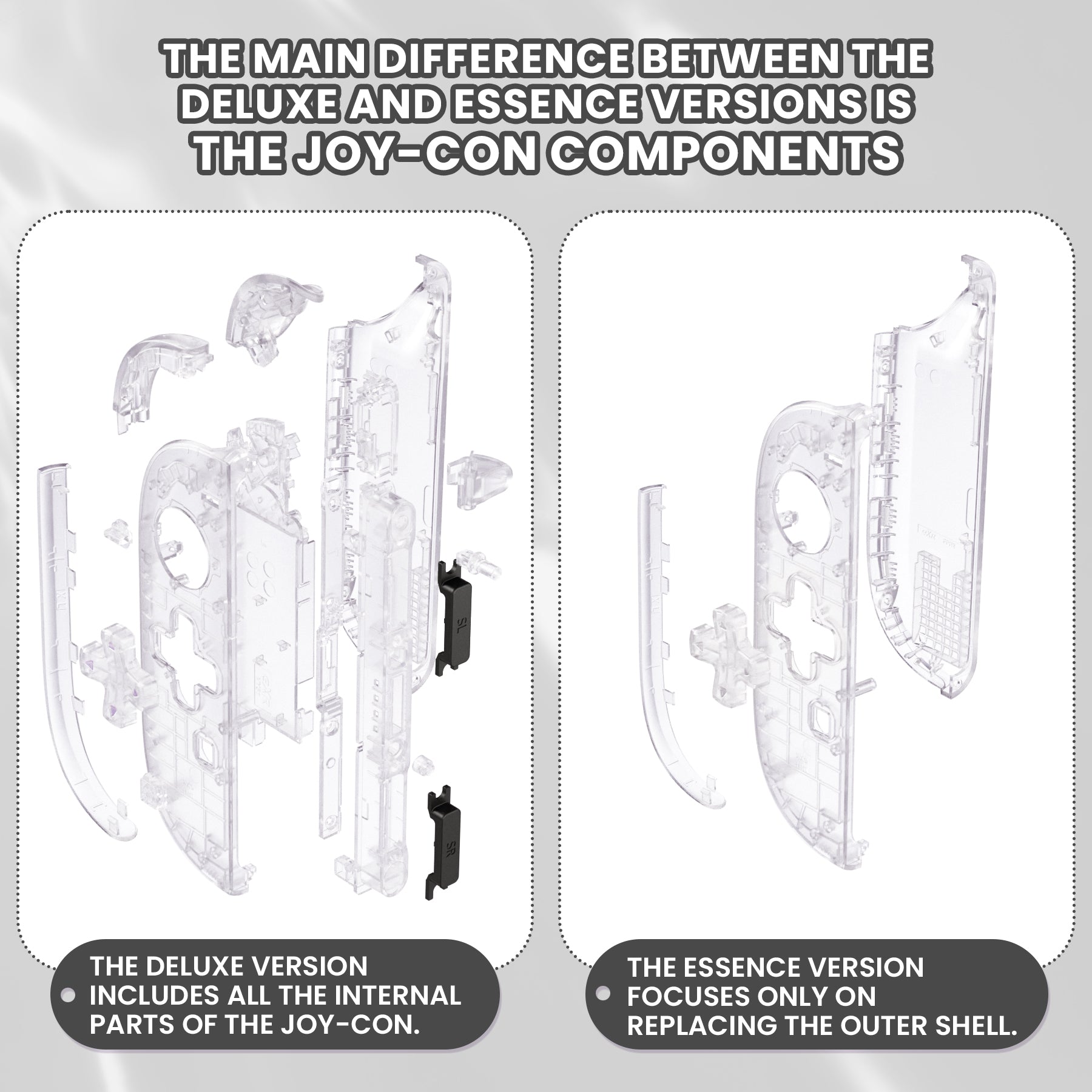 eXtremeRate Nintendo Switch 2対応ジョイコン交換フルセットシェルケース、方向ボタンバージョンボタン付き - デラックス版【クリア】