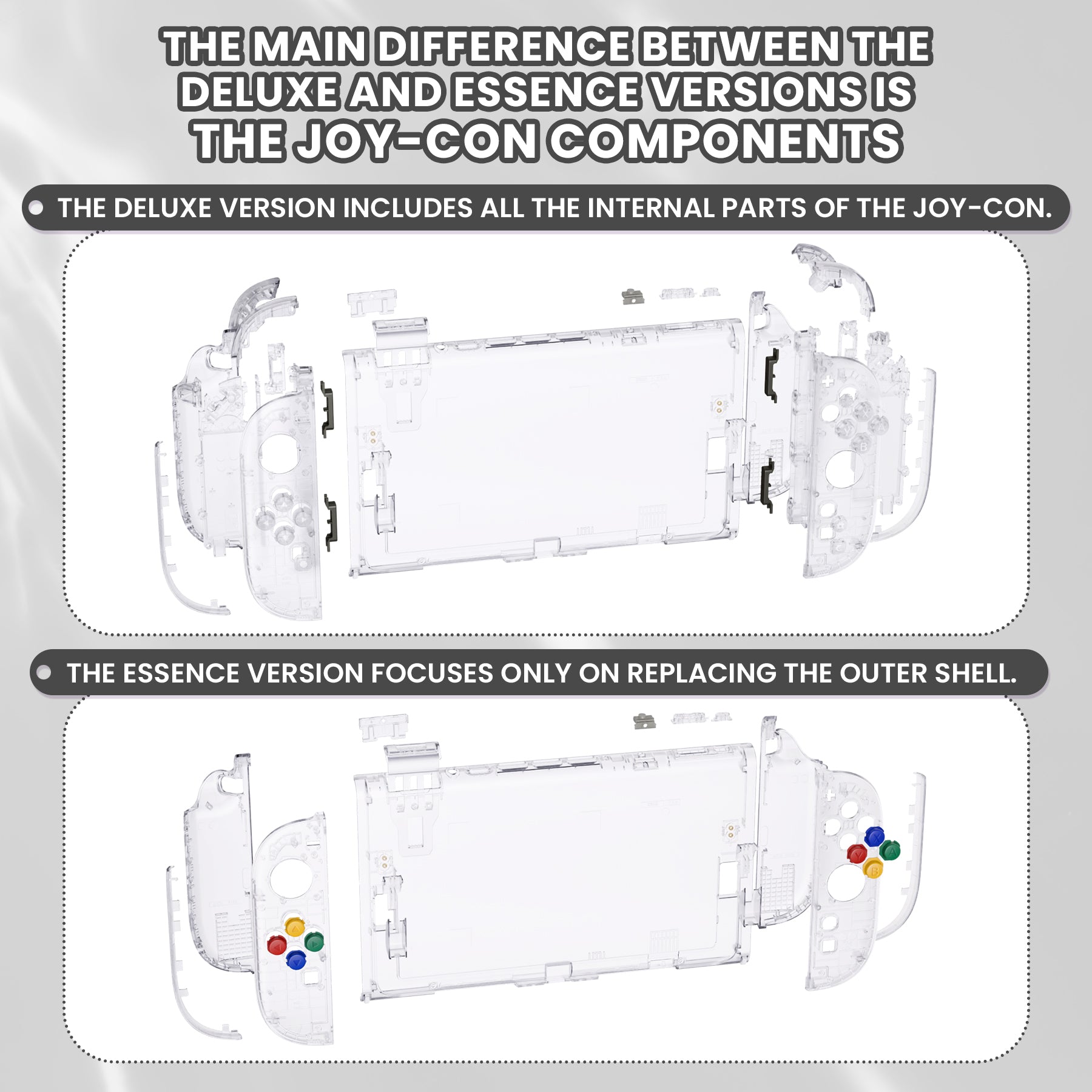 eXtremeRate Nintendo Switch 2対応交換フルセットシェル&ボタン - デラックス版【クリア】
