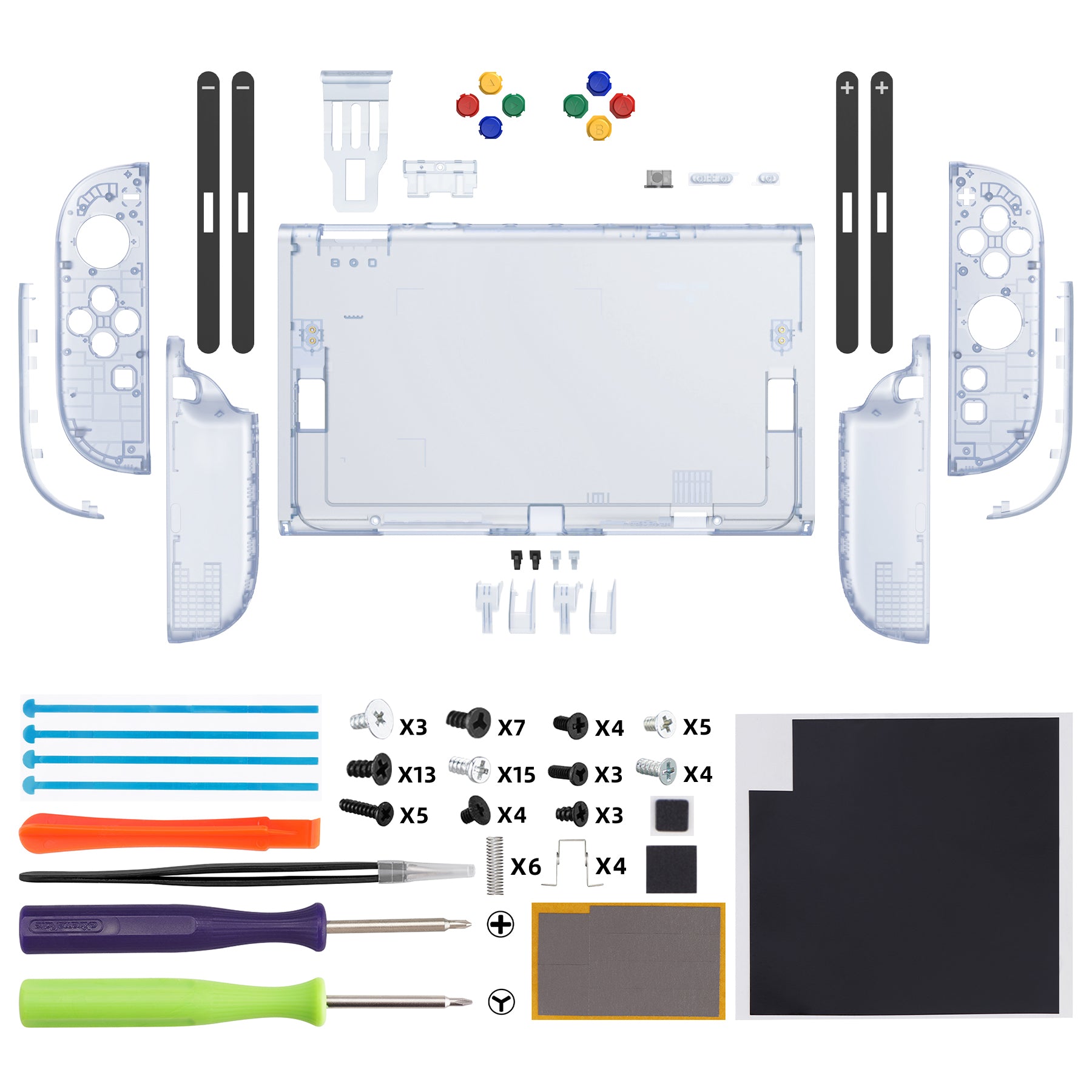 1. 本製品は携帯ゲーム機本体やJoyconそのものではありません。カラフルなABXYボタン付きの交換用ハウジングシェルのみで、電子部品は含まれていません。