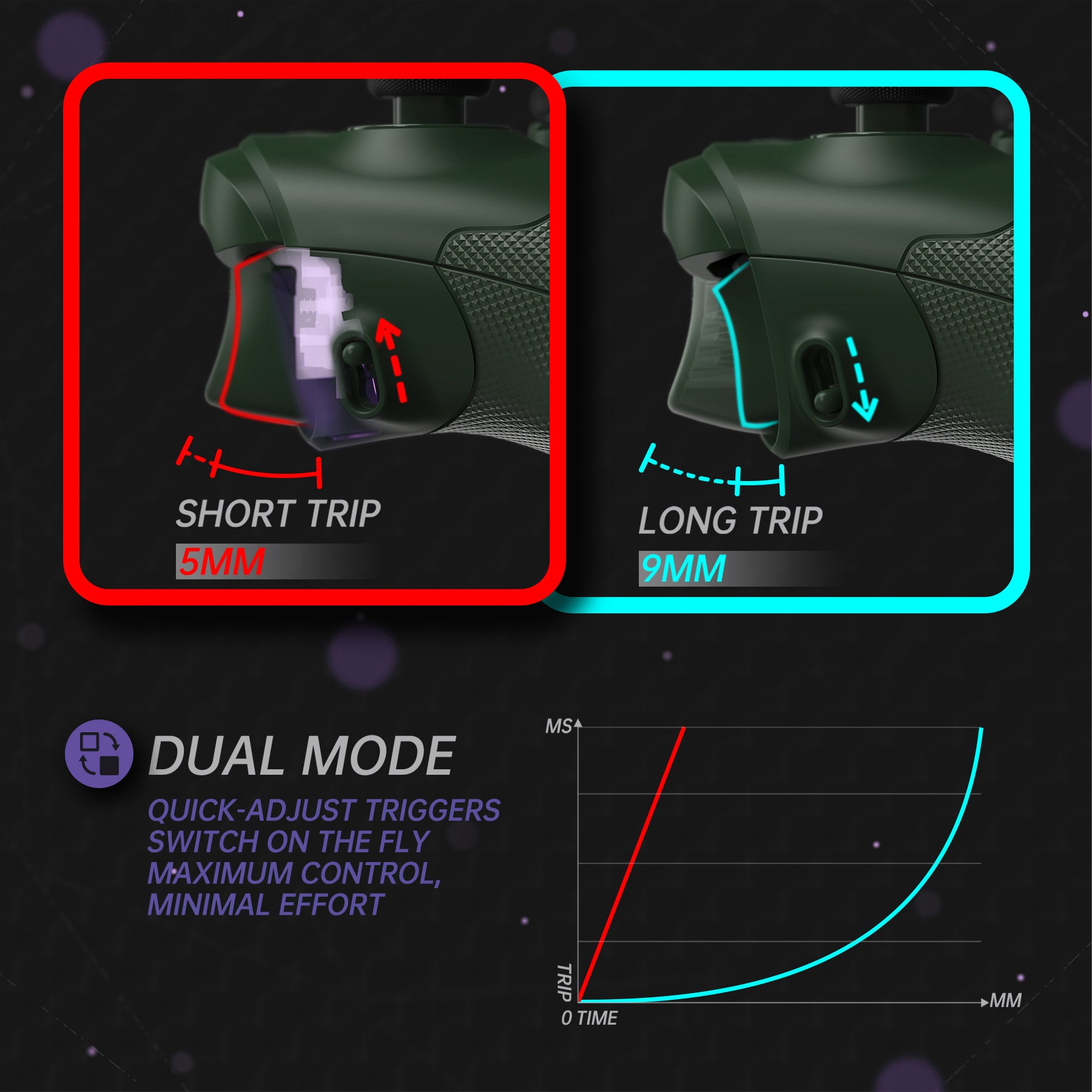 3. トリガーロックスイッチを装備し、LT/RTボタンのストロークを9mmから5mmに短縮。より速い反応速度と高精度な操作を実現し、通常のコントローラーをプロ仕様のゲーミングデバイスにアップグレードします。